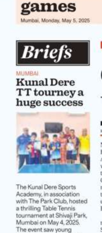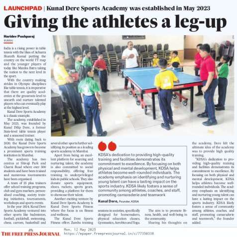 It is a well established Institution in India that offers professional training to students of all levels. Founder Mr. Kunal Dere a former State Level table tennis player & trainer with extensive experience in training & developing young talents. Co Founder Mr. Pranav Shah a senior Table Tennis trainer with over 15 years of experience.